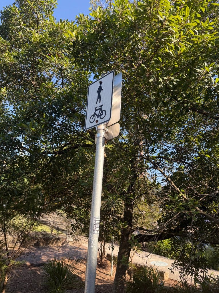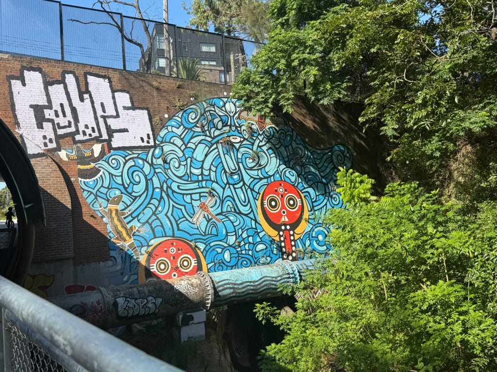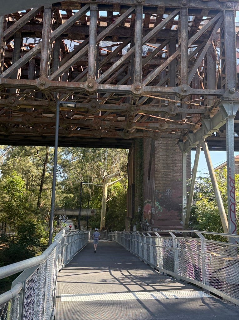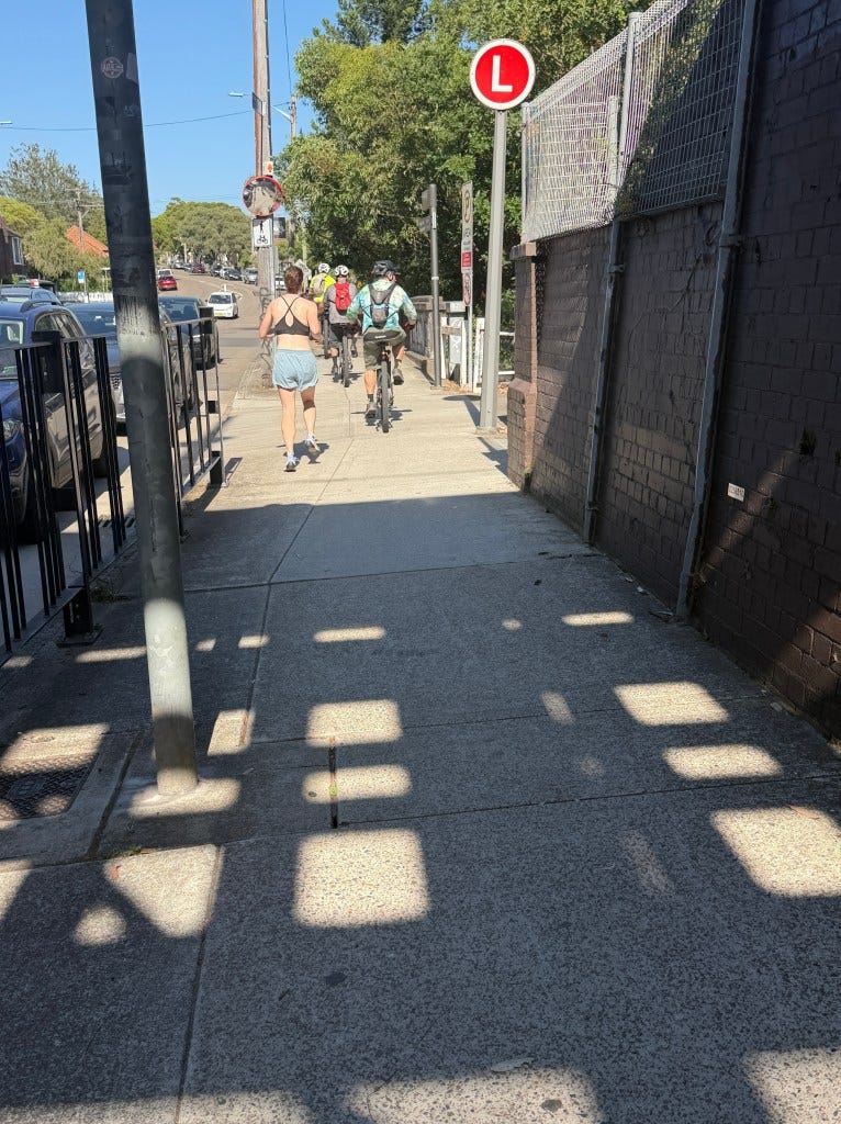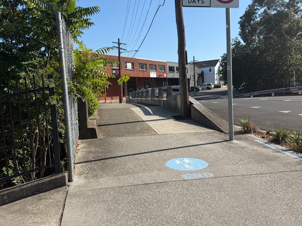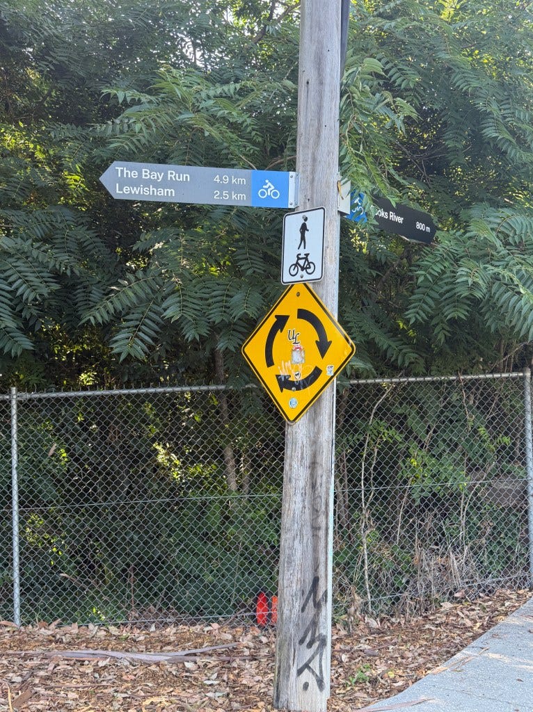 There are many wayfinding signs, though it is still a bit confusing to follow the first time, especially when it cross streets. I am not sure that is fixed by more signs rather than by a more self-explaining trail, or off-trail indicators. In any case, once you get on, it’s easy enough to follow in most places, since it parallels Sydney’s L1 Inner West LRT line, which is a former goods line that was converted to passenger service a decade ago, and is entirely grade-separated from cars outside of the CBD (though pedestrians can cross the tracks). The trail itself is mostly separated from traffic, but there are places that streets are crossed.