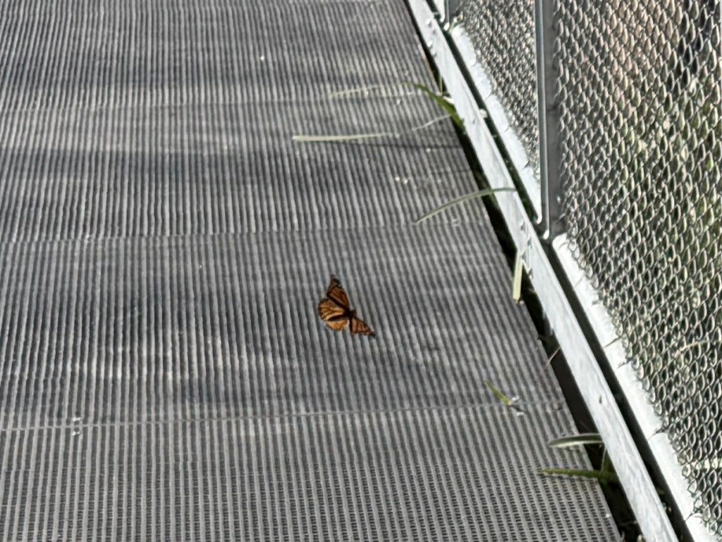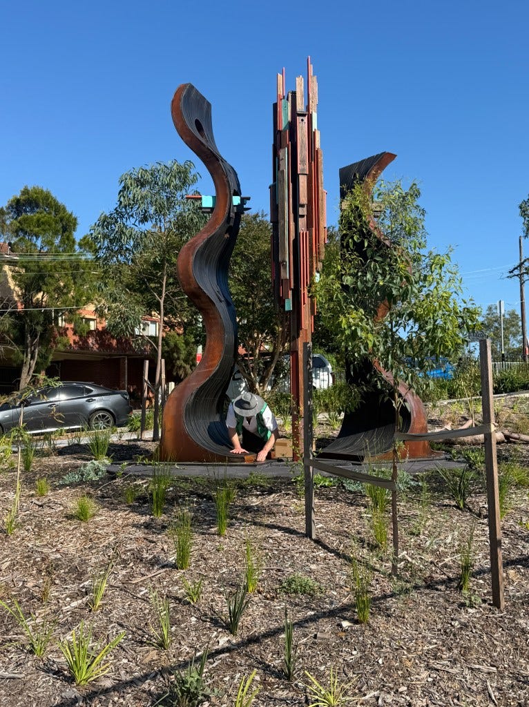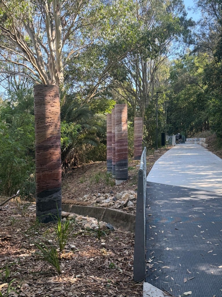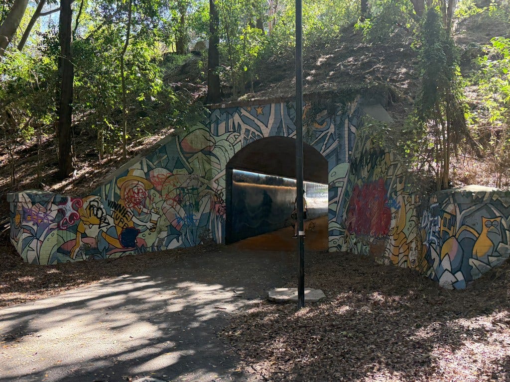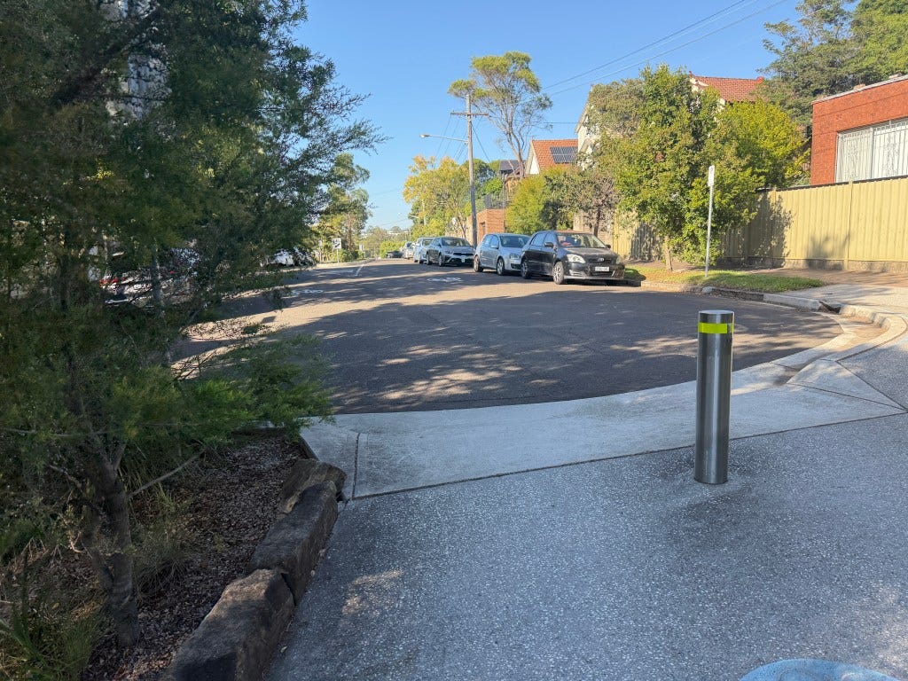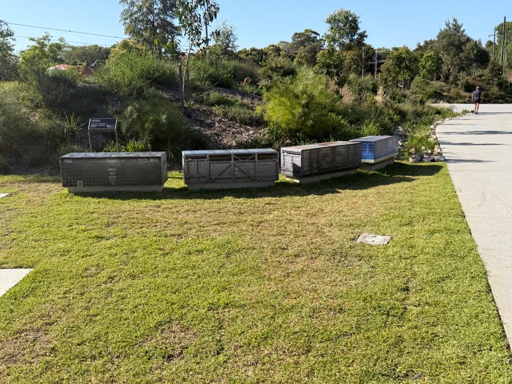 I picked up the GreenWay at Ewart Street and Ness Avenue, where a new roundabout and reconstructed pedestrian path under the soon-to-be-Metro tracks kick off the main part of the facility. Technically I guess the GreenWay follows Ness Avenue south toward the Cooks River, but this is basically on-street. (You will see from the photos below that I was first 400 m from the GreenWay, then 700m, but I think that’s because I took the hypotenuse of the triangle rather than going to the nominal starting point). In any case, what’s better than a trail where you can experience butterflies and wild turkeys and art work and playgrounds and active urban infrastructure (i.e. trains and pipelines) and almost not see any cars.