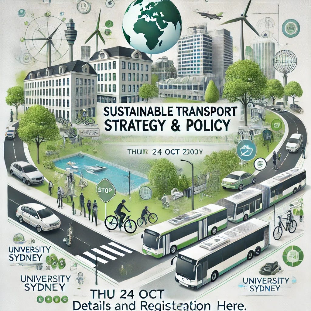 The University of Sydney is organising a Short Course on Sustainable Transport Strategy and Policy. It should be good, with several international speakers. (Thu 24 Oct 2024 - Fri 25 Oct 2024 - 2 sessions, 14 hours total). Details and Registration HERE.